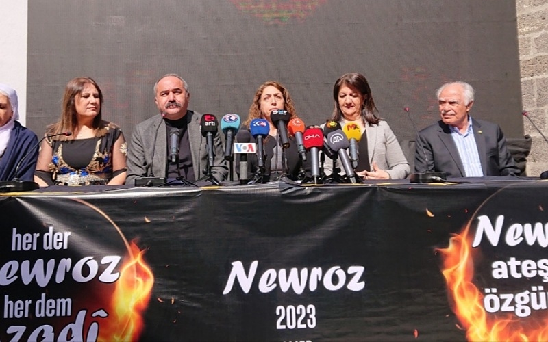 Bu yönüyle 2023 Newroz programlarının depremde yaşamını yitiren insanlarımıza adayacak, bu yıkımın büyük yası ve öfkesiyle alanlarda olacağız. Tüm yaşananlara rağmen umudumuzu ve yeni yaşama olan inancımızı daha da büyütecek, dayanışmamızı güçlendireceğiz. Depremde açığa çıkan ulusal birlik ve dayanışma ruhuyla Newroz alanlarına akıp yitirdiğimiz canları anacağız. Dirilişi toplumsallaştırmak, Newroz ateşi etrafında adaletin ve barışın sesini haykırmak için, ‘Herder Newroz, her dem azadî’ ve ‘Newroz ateşiyle özgürlüğe’ şiarıyla kutlayacağımız 2023 Newrozu’na tüm halklarımızı davet ediyoruz. Başta Kürt halkı olmak üzere bütün halkların Newroz’unu özgür ve eşit bir ülke özlemiyle kutluyoruz. Bijî Newroz, yaşasın Newroz.”