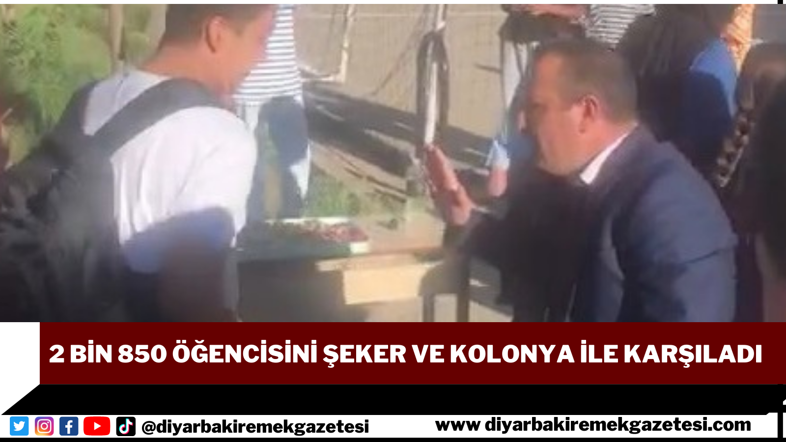 Diyarbakır Ak Şemsettin Ortaokulu Müdürü Davut Gümü bu yılda geleneği bozmayarak 2 bin 850 öğrencisini okulun ilk günü okulun giriş kapısından şeker ve kolonya ile karşıladı.
