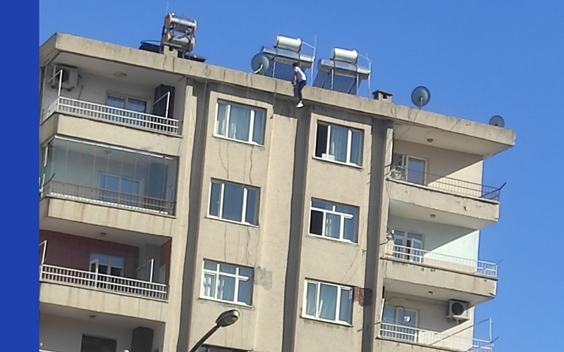 Diyarbakır'ın Bağlar ilçesinde, bir genç 7 katlı apartmanın çatısına çıkarak intihar etmeye kalkıştı.