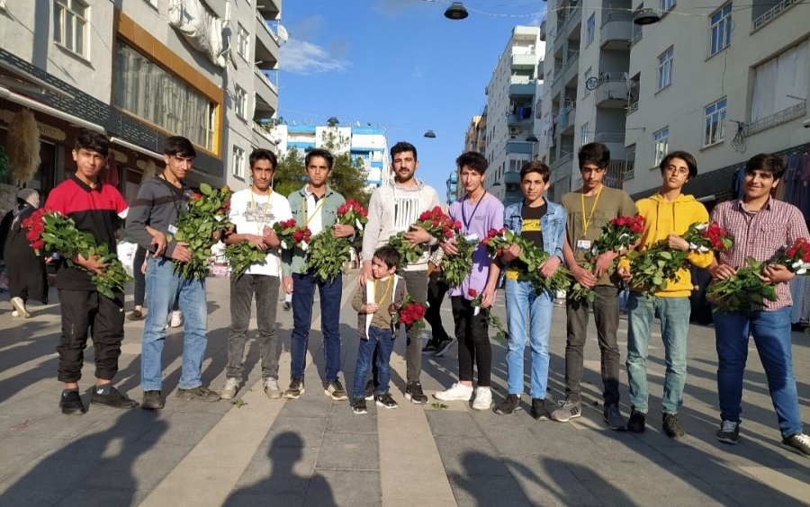 AGD'li bir grup genç, Diyarbakır'da 8 Mayıs Anneler Günü dolayısıyla kadınlara gül dağıttı.