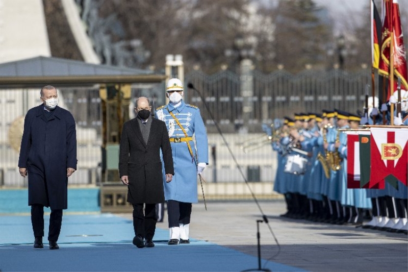 Cumhurbaşkanı Erdoğan, Almanya Şansölyesi Scholz’u resmi törenle karşıladı.