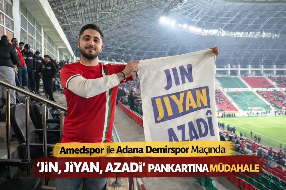 EMEK HABER - Amedspor ile Adana Demirspor arasında oynanan karşılaşmada tribünlerde açılan “Jin, Jiyan, Azadî” yazılı pankarta polis müdahale etti.