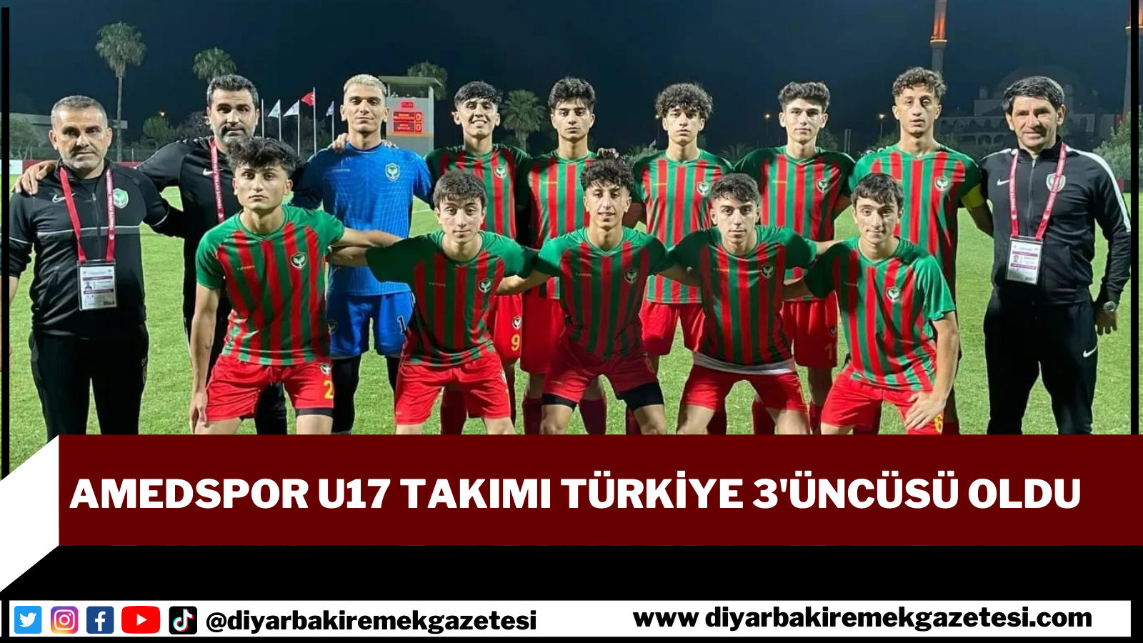 Amedspor U17 takımı, Bölgesel Gelişim Ligi Türkiye Finalleri maçında Ankaraspor'u 2-0 mağlup ederek Türkiye 3'ncüsü oldu.