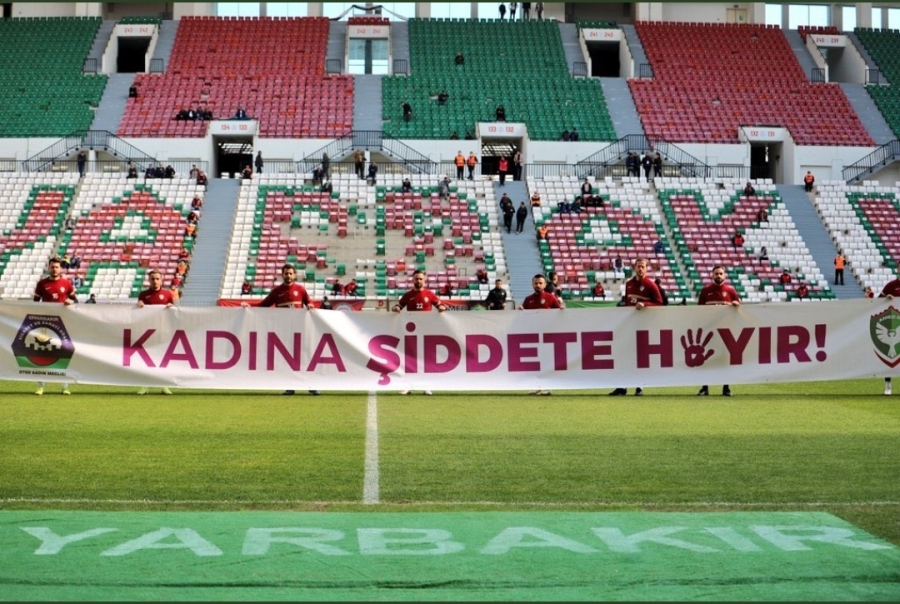 2. Lig Beyaz Grup'ta mücadele eden Amedspor'un, TFF 2.Lig 14. Haftasında, 1922 Konyaspor'u konuk ettiği maçta "Kadına Şiddete Hayır" Pankartı damgasını vurdu.