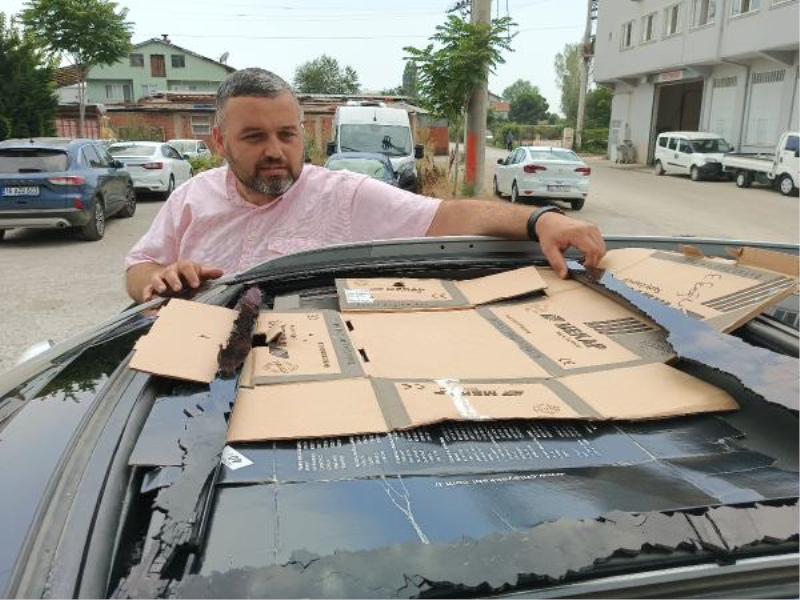 Olay, dün akşam saatlerinde Bursa'nın Orhangazi ilçesinde meydan geldi. Mustafa Yüksel 16 AJH 155 plakalı otomobilini Arapzade Mahallesi'ndeki evinin önüne park etti. Daha sonra yaya olarak markete giden Yüksel'i arayan arkadaşları, otomobilinin tavan kısmının hasar gördüğünü söyledi. Kısa sürede evinin önüne dönen Yüksel, açılır tavan penceresinin kırıldığını gördü. Otomobilin üzerinde yağ izleri, yerde ise kemik bulan Yüksel, komşularına kemiğin kim tarafından atıldığını sordu. Öğrenemeyince polis merkezine gitti. Olay yerine gelen polisler de, kemiği atanın kim olduğunu belirleyemedi ancak apartmandan atıldığı tahmin edildi. Konuyla ilgili şikayetçi olmayan Yüksel daha sonra aracını tamir ettirmek için çekiciyle Bursa'ya geldi. Yaklaşık 25 bin liralık zararının olduğunu belirten Yüksel, "Kasıtlı atılmamıştır. Bahçeye kedi köpek beslemek için atıldığını düşünüyorum. Belki iyi niyetli olarak yapılmış olabilir ama bu taraftan da kötü bir duruma sebep olundu. Bunu yapan kişi ya da kişiler en azından insaniyet namına söyleyebilirdi. Bütün binadakilere sormamıza rağmen kimse yapmadığını söyledi. Çok ayıp bir durum. Aracımı bugün servise getirdim. Yaklaşık 25 bin lira bir mağduriyetim var. Bunu kendi cebimden ödeyeceğim" ifadelerini kullandı.