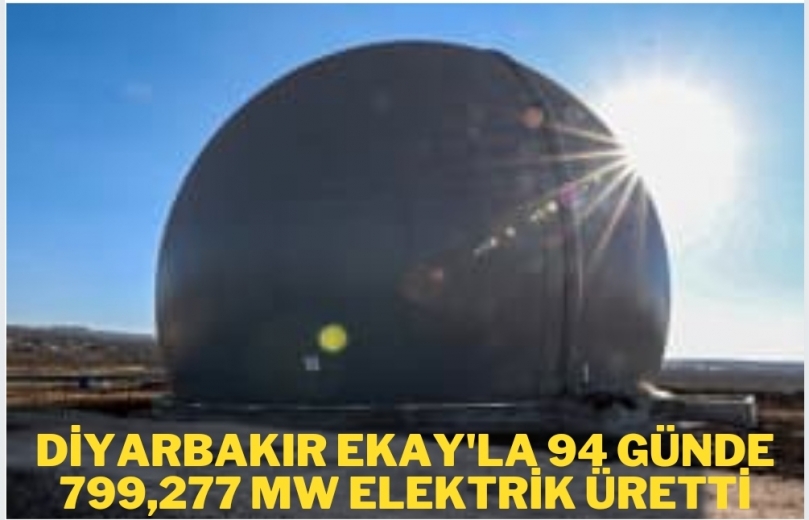 Diyarbakır EKAY`la 94 günde 799,277 MW elektrik üretti.