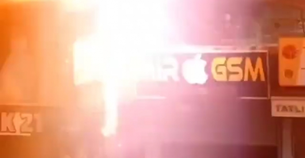Patlamanın ardından kıvılcımlar caddeye sıçradı.