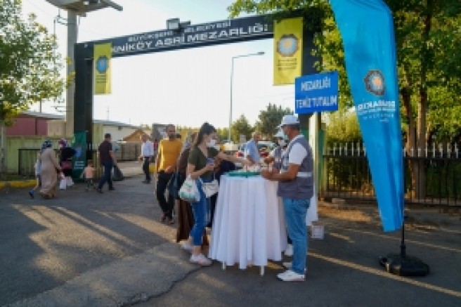 Diyarbakır Büyükşehir Belediyesi, Kurban Bayramı dolayısıyla kabir ziyareti yapan vatandaşlara, şeker ve lokum ikram etti.