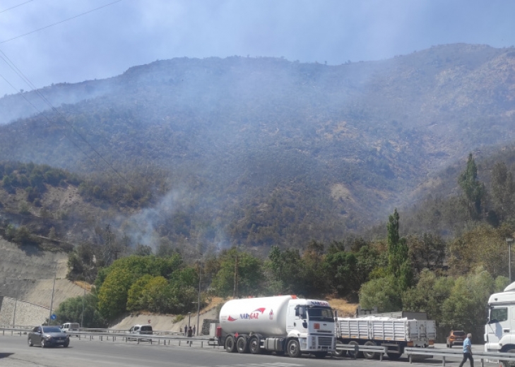 EMEK HABER- Bitlis- Diyarbakır kara yolunun Buzlupınar mevkiinde iki ayrı noktada örtü yangını çıktı.
