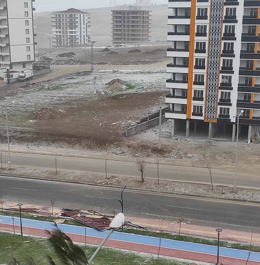 Olay saat 09:00 sıralarında Yenişehir Mahallesi Kuyubaşı toplu konut evlerinde meydana meydana geldi. Şiddetli fırtına yüzünden bir apartmanın çatısı uçtu. Yaşanan olayda herhangi can ve mal kaybı olmazken görüntüler bir vatandaşın cep telefonu kamerasına yansıdı.
