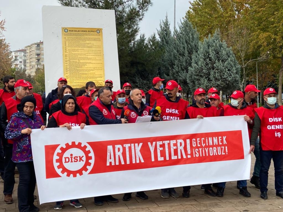 DİSK üyeleri, faiz indirimi nedeniyle döviz kuru yükselmesine bağlı yaşanan hayat pahalılığına ilişkin basın açıklaması yaptı. Diyarbakır merkez Bağlar ilçesi Koşuyolu Parkı’nda “Artık yeter! Geçinmek istiyoruz!” adıyla düzenlenen eylemde konuşan DİSK Temsilcisi Hasan Hayri Eroğu "Her sabah yeni zamlara uyanıyor, her gün yoksullaşıyoruz..” ifadesini kullandı.