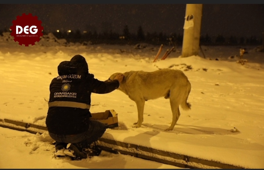 Diyarbakır Büyükşehir Belediyesi, etkili olan kar yağışı ve soğuk dolayısıyla "Her can bize emanet" şiarıyla sokak hayvanları için 50 noktaya mama bıraktı.