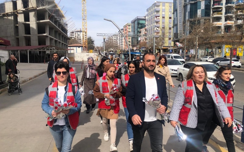 CHP Diyarbakır 8 Mart Dünya Emekçi Kadınlar Günü'nde karanfil dağıttı
