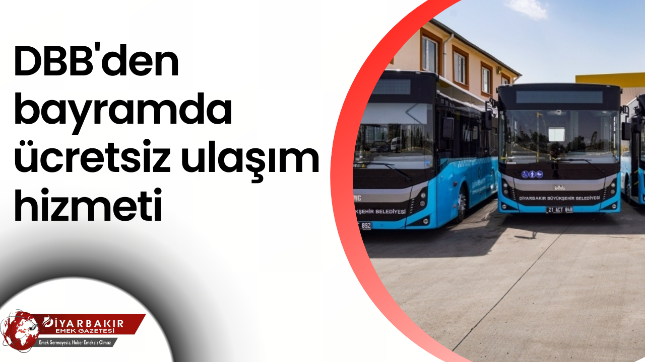 Diyarbakır Büyükşehir Belediyesi, Arefe günü ve Ramazan Bayramı süresince belediyeye ait araçlarla toplu taşıma hizmetini ücretsiz gerçekleştirecek.
