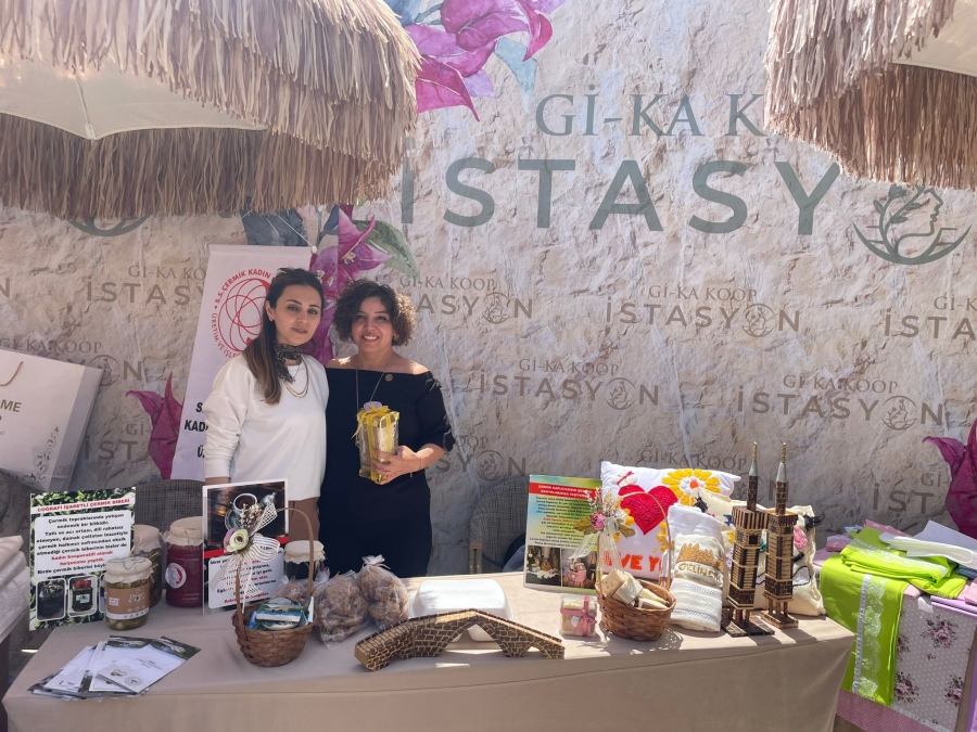Maraş merkezli depremlerden olumsuz yönde etkilenen üretici kadınlar "Depremzede üreten kadınlar Kıbrıs ile buluşuyor" mottosuyla, Kıbrıs'ta düzenlenen "Kadın Kadının Yurdudur" festivalinde buluştu.