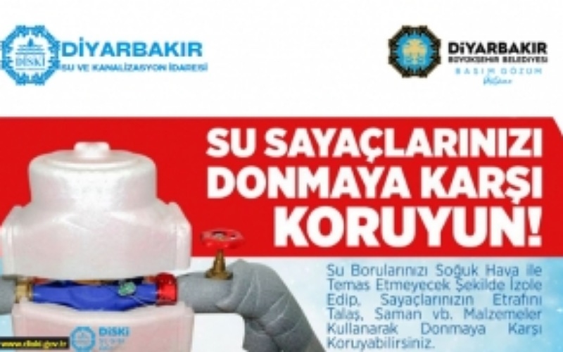 Diyarbakır Su ve Kanalizasyon İdaresi (DİSKİ) Genel Müdürü Fırat Tutşi, hava sıcaklığının düşmesi nedeniyle su sayaçlarının donmalarına karşı vatandaşları uyararak, gerekli tedbirlerin alınmasını, donan sayaçlar olursa müdahale edilmeden “153” ihbar hattının aranmasını istedi.