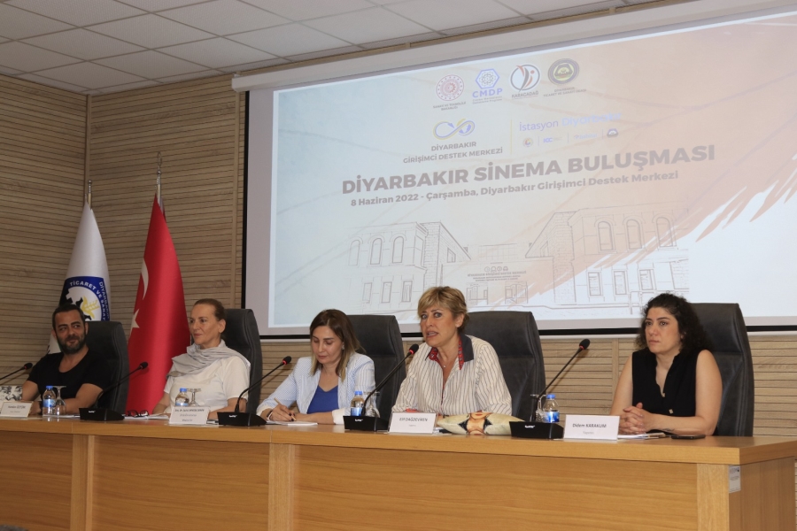 Açılış konuşmasını yapan Diyarbakır Ticaret ve Sanayi Odası Yönetim Kurulu Mehmet Kaya, “Diyarbakır genç nüfusu yüksek. Ancak bu avantajın zamanla tehdide dönüşebileceği bir kent. Kentte ne eğitimde ne istihdamda olan gençlerin sayısı hızla artıyor. Gençlerin ekonomiye katılımını destekleyecek projeler üretiyoruz. Bunlardan ilki Sanayi Mektebi’ydi. Farklı alanlarda düzenli eğitim programları gerçekleştiriyoruz. Eylül ayında hizmete açacağımız Gastro İnovasyon Merkezi’nde yöresel ürünler ve lezzetler ile bu alandaki eğitimlere odaklanacağız. Girişimci Destek Merkezimiz ise gençlerin yenilikçi girişimlerini destekleyen bir merkez. Kentin kültürel miras değerleri, hikayeleri düşünüldüğünde bu kaynaktan ilham alan kültürel çalışmaların gelişmesi mümkün. Sinema sektörü bu alanlardan biri ve yerelde de bu alandaki girişimlerin, inisiyatiflerin sayısı oldukça fazla. Bu nedenle ulusal ve yerel düzeyde yapımcı, yazar, yönetmen ve oyuncuları bir araya getirmek istedik” şeklinde konuştu.