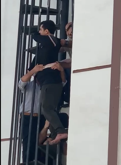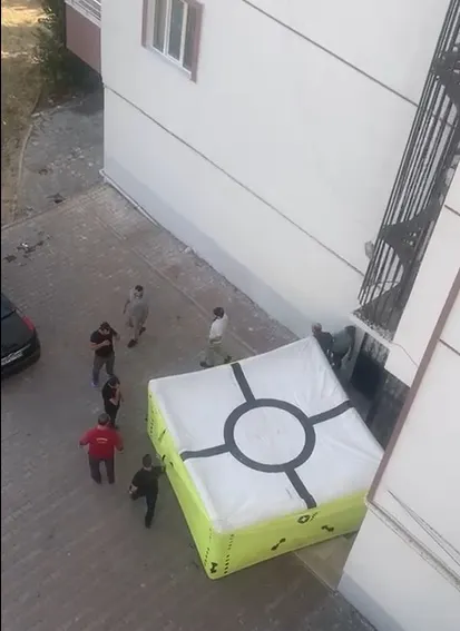 Burada tehlikeli bir şekilde korkuluklardan sıyrılarak dışarıya sarktı. Olayı gören mahalle sakinleri hemen durumu yetkililere bildirdi. Ancak, itfaiye ekipleri olay yerine gelene kadar şahsın babası, oğlunu düşmemesi için çarşaf ile demir korkuluklara bağlayarak tutmaya çalıştı. İtfaiye ekipleri olay yerine geldiğinde uzun uğraşlar sonucunda demir korkulukları keserek adamı kurtarmayı başardılar. Olay, çevredeki vatandaşlar tarafından korku dolu gözlerle izlendi. Yetkililer, olayın ardındaki sebepleri araştırırken, mahalle sakinleri olayın son anda önlenmesine büyük bir şükran duyduklarını ifade etti.