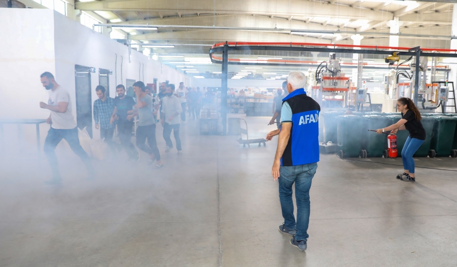 İtfaiye Daire Başkanlığı ve AFAD’ın iş birliğiyle OSB 3.üncü etapta bulunan bir fabrikada personele yönelik yangın ve deprem konusunda eğitim verildi, ardından tatbikat yapıldı.