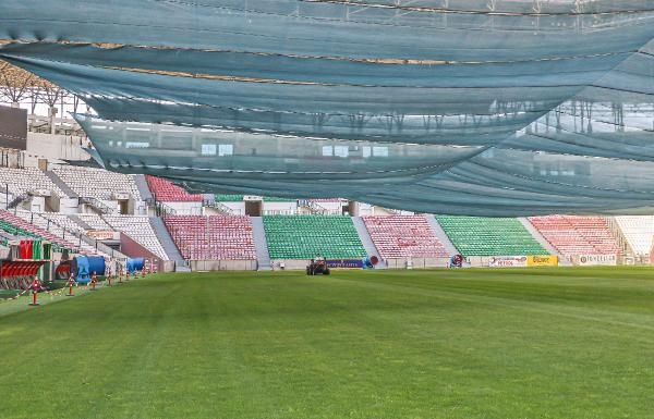 Şampiyonalar için stadyumun hazırlandığını, bu nedenle sürekli bakımının yapıldığını belirten Çelik, "Bu sebeple altyapımızı her gün biraz daha artırarak, daha verimli şekilde çalışmayı hedefliyoruz. Şu an kurduğumuz file, yüzde 70-80 oranında güneş ışınlarını kesmiş durumda. Bu sebeple ihtiyaç duyulan güneş besinini, kaynağını kendi içerisinde sağlamaktadır. Ekstra ihtiyaç duyulduğu zaman aç-kapa yöntemi ile güneş ışınını sağlıyoruz. Şu an stadyumda tüm müsabakalar rahatlıkla oynanabilir seviyede. Büyük maçlar için burada buluşmayı bekliyoruz" diye konuştu. (DHA)