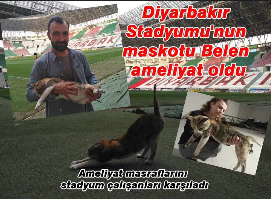 Ameliyat ile sağlığına kavuşan kedinin ameliyat masraflarını da yine stadyum çalışanları karşıladı. Diyarbakır Stadyumu'nda yaşayan ve stadyum çalışanlarından ve ziyaretçilerden büyük ilgi gören Belen isimli kedi, geçirdiği kaza sonucu kuyruğunda kopma meydana geldi. Kedinin acı çektiğini gören stadyum çalışanları, Belen'i veterinere götürerek ameliyat ettirdi. Ameliyat ile sağlığına kavuşan kedinin ameliyat masraflarını da yine stadyum çalışanları karşıladı.