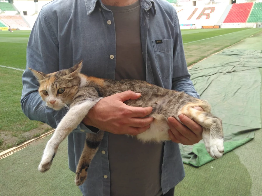 Belen'in stadyumun maskotu haline geldiğini belirten Stadyum Çalışanlarından Burcu Kirkit, “Stadyumun kedisi olan yani stadyumda doğup büyüyen burada yavrulayan Belen isimli kedimizin kuyruğu kopacak derecedeydi. Sanırım ya bir yere sıkıştı ya da bir araç kuyruğunun üzerinden geçti. Yanımıza geldiğinde kuyruğu yara içerisindeydi vücudunu enfeksiyon sarmasın diye antibiyotik ve ilaç tedavisi uyguladık bir hafta ancak geçmedi. Bu tedavilerin hepsini veteriner eşliğinde yaptık. Bir hafta sonra kuyruğunun 7-8 santim uzunluğunda olan bölümü koptu. Bizler de veterineri aradık kedilerde en ince hassas sinir uçlarının kuyruklarında olduğunu ve canının çok acıya bileceğini söyledi. Veterinere götürdük narkoz vuruldu kopan kuyruğunun yeri dikildi. Çok doğum yaptığından dolayı ağzındaki dişlerden bir tanesi çürümüş ve apse yapmıştı o dişini de çektirdik. Hazır narkoz varken artık doğum yapmasının riskli olduğunu bildiğimiz için kısırlaştırma ameliyatını da gerçekleştirdik. 4 gün boyunca veterinerde kaldı sonra teslim alıp tekrar stadyuma yavrularının yanına getirdik” dedi.