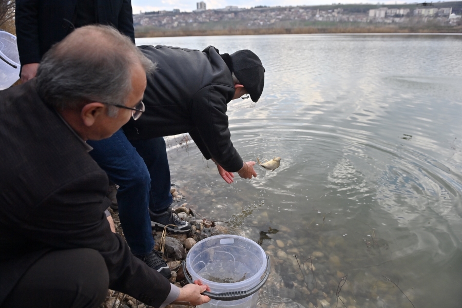 Karaloğlu, Tarım ve Orman Bakanlığı Su Ürünleri Genel Müdürlüğü'nün sağlamış olduğu balıkları gölete bıraktı.
