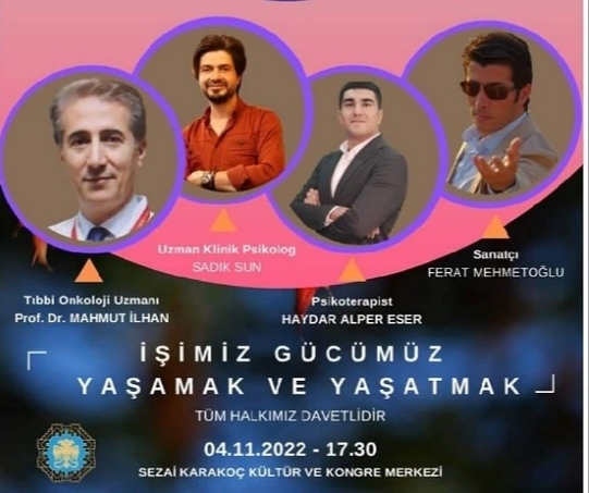 Tıbbi Onkoloji Uzman Prof. Dr. Mahmut İlhan,Klinik Psikolog Sadık Sun, Psikoterapist ve Aile Danışmanı Haydar Alper Eser tarafından çok önemli bilgilerin verileceği etkinlik kapsamında ayrıca Sanatçı Ferat Mehmetoğlu'da konser verecek.
