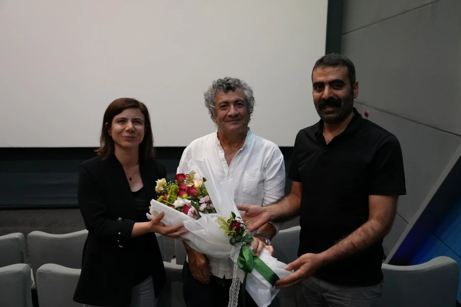 Gösterimin ardından, Eş Başkanlar Bucak ve Hatun, yönetmen Mano Khalil’e çiçek takdim etti.