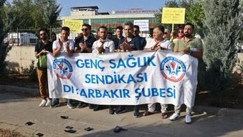 Genç Sağlık Sen Diyarbakır Şubesi üyeleri, İl Sağlık Müdürlüğü önünde toplanarak, yaptıkları basın açıklamasıyla memur maaşı zam oranına tepki gösterdi.