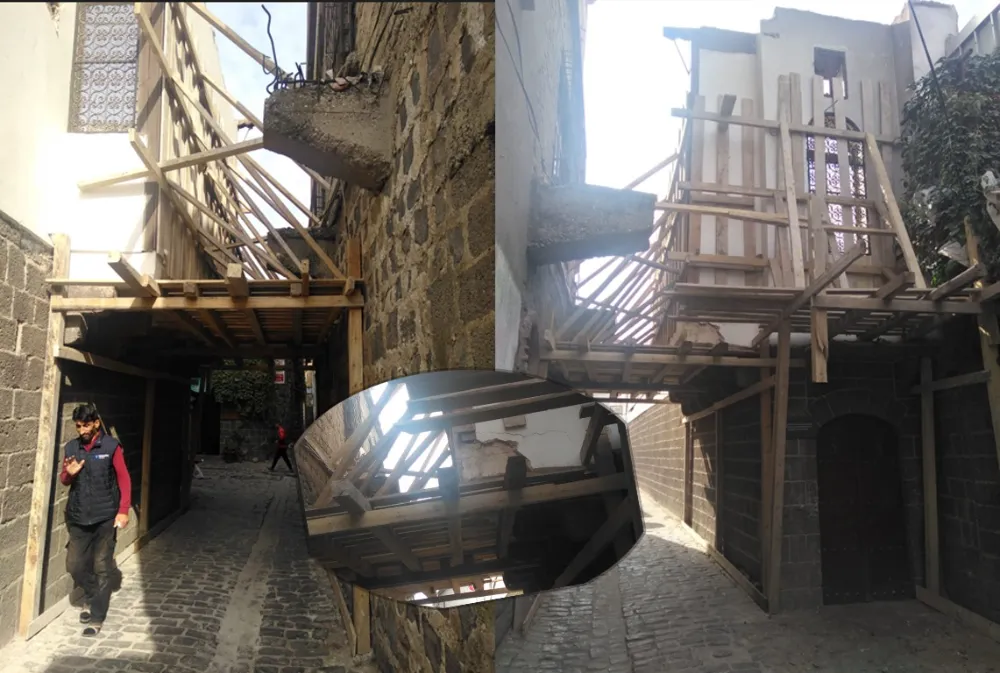 Diyarbakır'ın tarihi Sur İlçesi'nde bulunan Cahit Sıtkı Tarancı Müzesi'nde yapılan tadilat çalışmaları, sokaktan geçen vatandaşlar arasında endişe yaratıyor. Son dönemlerde müzenin duvarlarında oluşan çökme tehlikesi nedeniyle tadilata alınan müzenin çevresinde, geçiş güzergahı olarak kullanılan sokakta tahtadan iskeleler kuruldu. Ancak, bu tahta iskeleler, vatandaşlar arasında çökecekmiş hissi uyandırıyor.