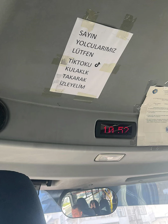 EMEK HABER- Diyarbakır’da bir şehir içi yolcu minibüsü, ilginç bir uygulamaya imza attı. Minibüs şoförü, yolcularının sesli TikTok videoları izlemesi nedeniyle rahatsızlık yaşandığını fark edince, araç içine asılan bir uyarı yazısı ile dikkatleri üzerine çekti. "Sayın yolcularımız, lütfen TikTok'u kulaklık takarak izleyelim" ifadelerinin yer aldığı yazı, minibüse binen tüm yolcuların ilgisini çekti.
