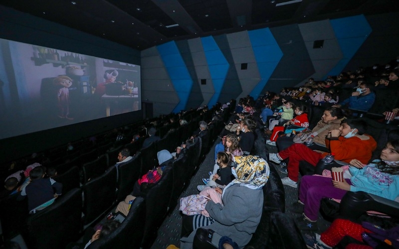 Kültür ve Sosyal İşler Dairesi Başkanlığı’nın film gösterimlerine yoğun ilgi gösteren vatandaşlar, çocukları ile birlikte kısa sürede tüm koltukları dolduruyor.