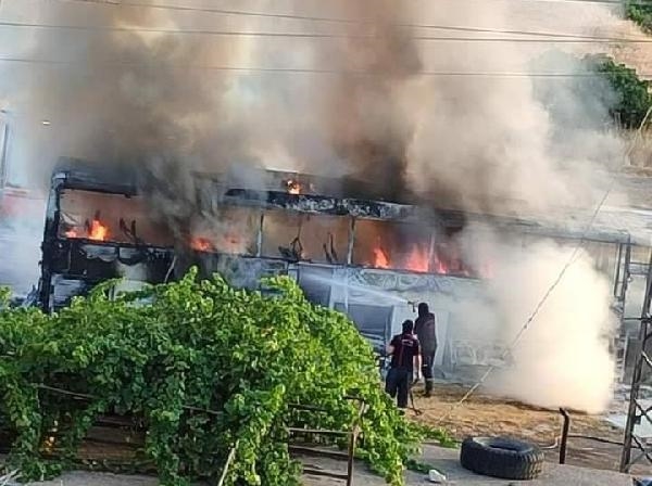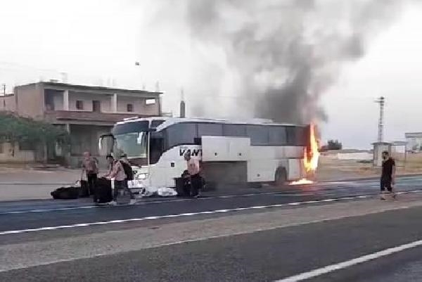 Diyarbakır’da seyir halindeyken alev alan yolcu otobüsü, kullanılamaz hale geldi. Alevleri fark eden sürücü, otobüsü yol kenarında durdurarak yolcuları tahliye etti.