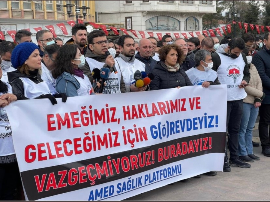 Amed Sağlık Platformu adına açıklama yapan Diyarbakır Tabipler Odası Başkanı Elif Turan, Toplu sözleşmelerle mali, sosyal, özlük hakları iyileştirilmeyen, çalışma koşulları daha da ağırlaştırılan, iş barışı bozulanların haftasıdır 14 Mart.dedi.