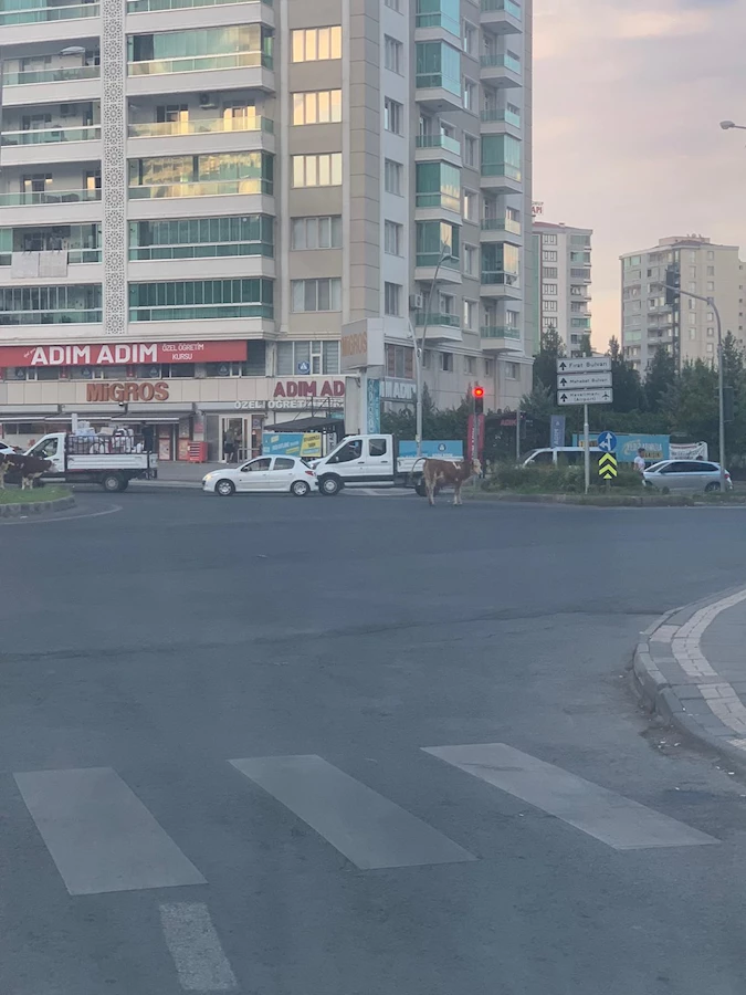 EMEK HABER- Diyarbakır’ın 50 Metrelik Yolu olarak bilinen işlek caddesinde, şehir merkezine inen bir grup inek trafiği adeta alt üst etti. İneklerin aniden yola çıkmasıyla araçlar durmak zorunda kaldı, sürücüler ise şaşkınlık içinde bu ilginç olayı izledi.