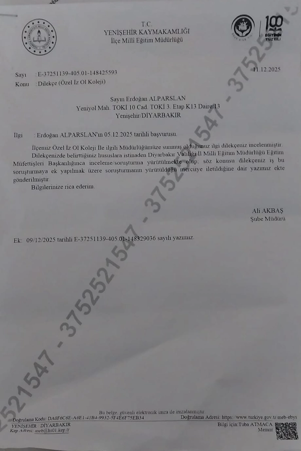 Veli Sinan Akak ise Milli Eğitim Bakanlığı müfettişlerinin okula gelerek inceleme yaptığını belirterek, “Müfettişler okulun mevcut şartlarda eğitim için uygun olmadığı yönünde tespitler yaptı. Ancak çocuklarımız hâlâ mağdur. Yetkililerin artık bu duruma müdahale etmesini istiyoruz” dedi.
