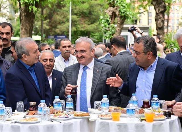 Farklı çizgideki siyasileri buluşturan bayramlaşma programında konuşan Vali Münir Karaloğlu, "Ramazan ayının bu sene Diyarbakır’da hem maddi olarak hem de manevi olarak farklı geçtiğini söyledi. Diyarbakır’da güzel bir Ramazan geçirdiklerini ifade eden Vali Karaloğlu, “Ramazan ayı içerisinde her akşam başka bir ilçede farklı vatandaş gruplarımızla iftar sofralarında bir araya geldik. Onlarla oturduk, dertleştik ve sorunları dinledik. Çözebileceğimiz sorunları hemen yerinde çözdük. Orta ve uzun vadede olanları da notlarımıza aldık. Bu sorunların çözümü ile ilgili gerekli talimatları arkadaşlarımıza verdik” dedi. Yaşanılan bütün güzelliklerin temelinde Diyarbakır’da yakalanan huzur ve güven ortamının olduğunu vurgulayan Karaloğlu, bu iklimi muhafaza ve aktarma konusunda her vatandaşın ayrı ayrı görevi olduğunu dile getirdi. “Vatandaş huzurun, güvenin ve mutluluğunun kıymetini bilmeli ve sahiplenmeli” ifadelerini kullanan Karaloğlu, konuşmasını şöyle tamamladı: “Diyarbakır’da vatandaşı rahatsız eden farklı suç gruplarına karşı çok ciddi mücadelemiz var. Vatandaşı rahatsız eden her sorun bizim için önemli ve kıymetli. Biz devlet olarak bu sorunların üzerine gitmekle mükellefiz ve gidiyoruz. Bu mücadelemiz devam edecek. Şehrin yakalamış olduğu huzur ve güven ortamını hep birlikte sahiplenmemiz gerek.