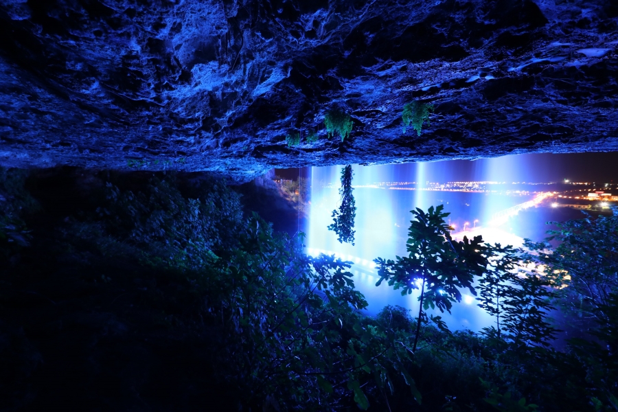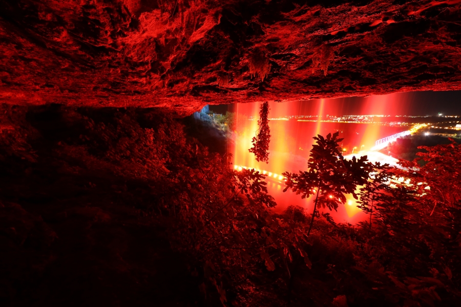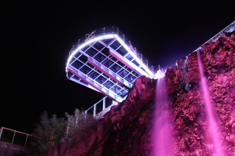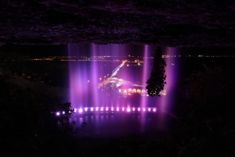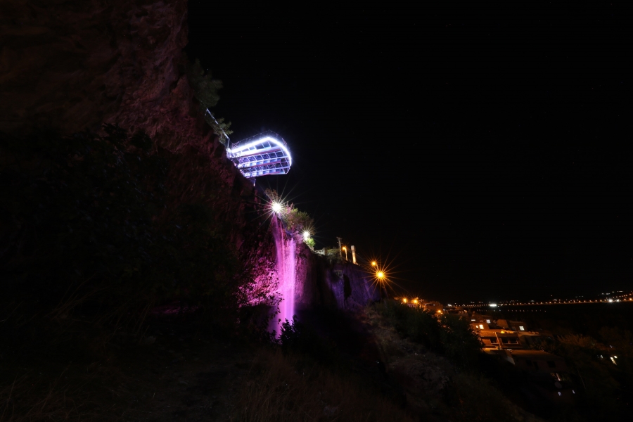 DİSĶİ Genel Müdürlüğü’nün tekrar akar hale getirdiği Fiskaya Şelalesi yapılan ışıklandırmayla rengarenk bir görünüme kavuştu.