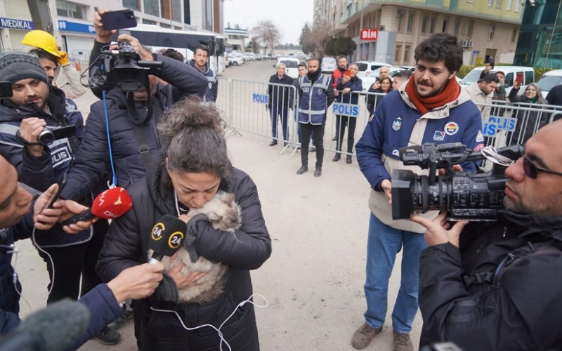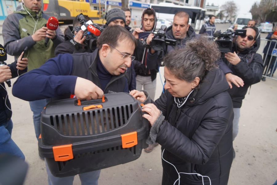 Diyarbakır Büyükşehir Belediyesi ve AFAD ortaklığıyla yürütülen çalışmada, Kahramanmaraş merkezli depremlerde ağır hasar gören ve yıkımına ara verilen Galeria İş Merkezi ve üstündeki sitedeki 3 kedi kurtarıldı.