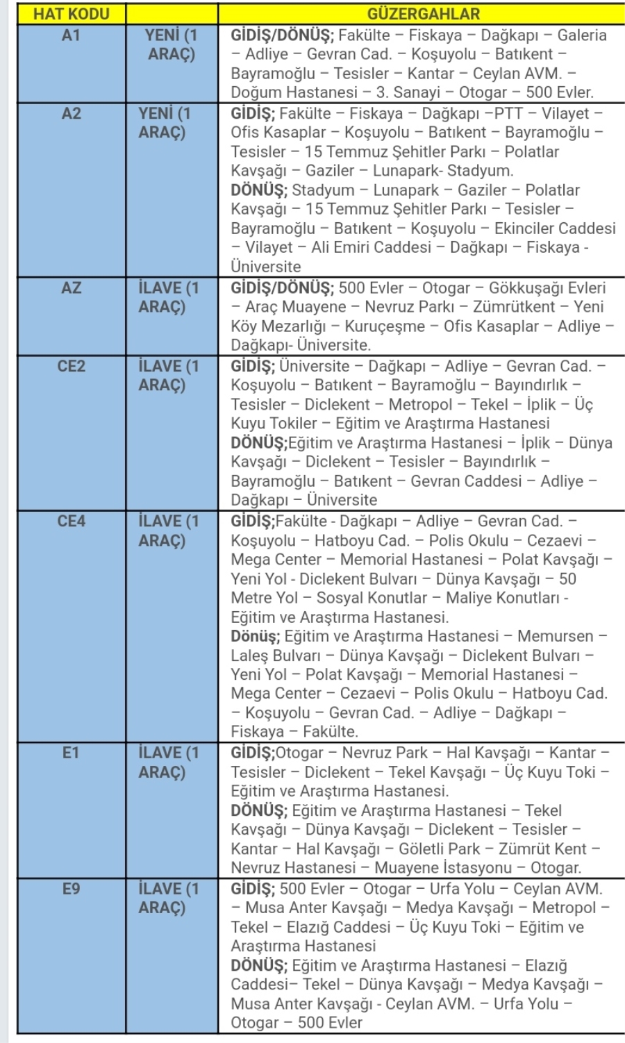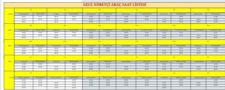 Yeni belirlenen ve sefer sayıları artırılan güzergahlarda araçlar saat 20.00 ile gece 01.00 arasında hizmet verecek.