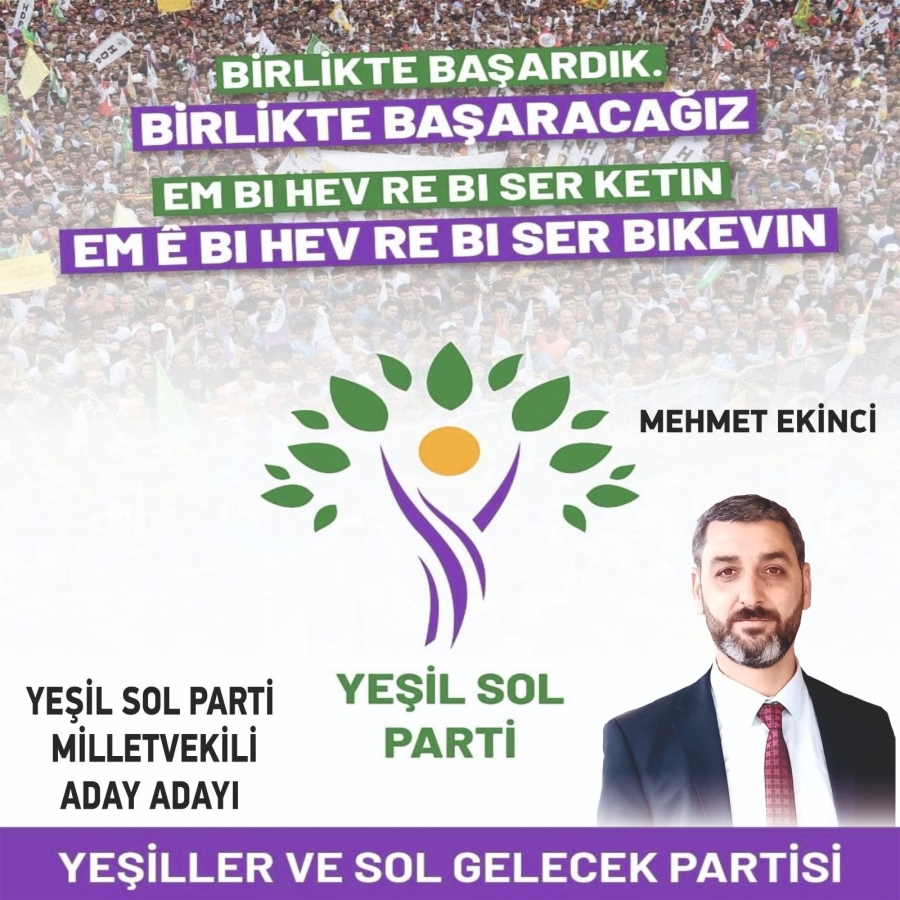 Yardımseverliğiyle bilinen, Diyarbakır'ın tanınmış simalarından Genç Siyasetçi Mehmet Ekinci, Yeşiller ve Sol Gelecek Partisi'den Diyarbakır milletvekili aday adayı oldu.