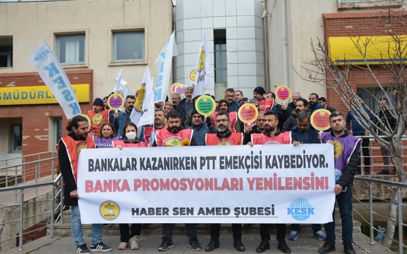 HABER-SEN Diyarbakır 3 No’lu Şube, PTT’de banka promosyonlarının yenilenmesi talebiyle basın açıklaması yaptı.