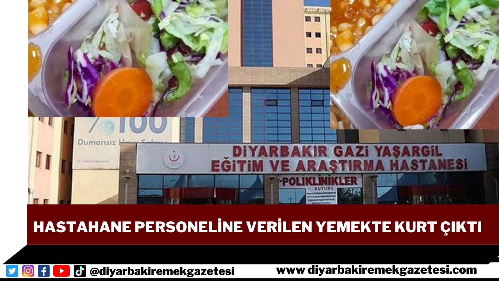 Diyarbakır'da pandemi hastanesi olan SBÜ Gazi Yaşargil Eğitim ve Araştırma Hastanesi'nin personel yemeğindeki salatadan canlı kurt çıktı.
