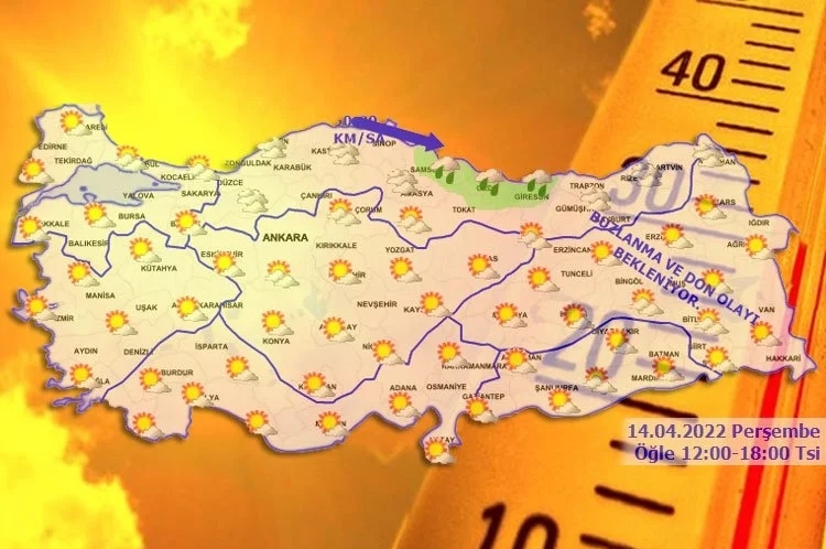 Meteoroloji'den alınan bilgilere göre hava sıcaklığının iç kesimlerde 2 ila 4 derece artacağı, diğer yerlerde önemli bir değişiklik olmayacağı, iç ve doğu kesimlerde mevsim normalleri altında seyretmeye devam edeceği tahmin edildi