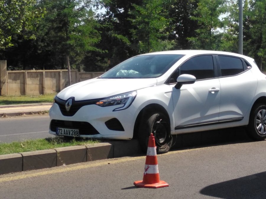 Diyarbakır'ın Bağlar ilçesinde hızını alamayan araç sürücüsü direksiyon hakimiyetini kaybederek yol ortasındaki bariyerlere çıktı.