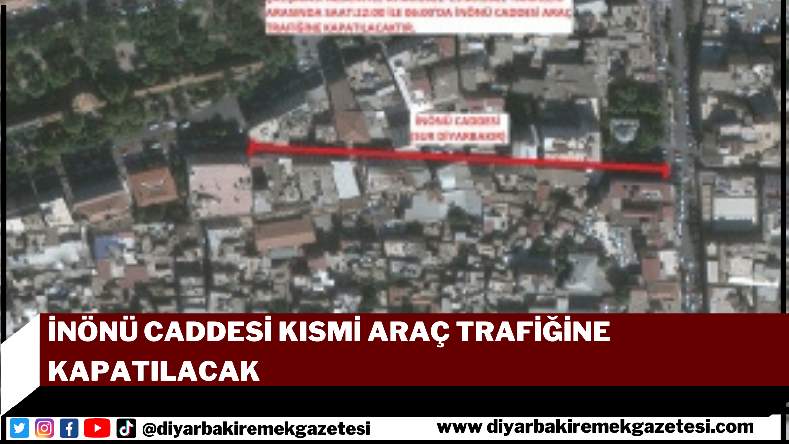 Diyarbakır Büyükşehir Belediyesi, sokak sağlıklaştırma çalışmaları dolayısıyla 9-15 Haziran arasında İnönü Caddesi’ni kısmi olarak araç trafiğine kapatacak.