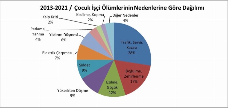 Türkiye'de son 9 yıl içerisinde ölen çocukların 316'sının tarım ve orman; 57'sinin inşaat 37'si metal; 27'sinin ise konaklama ve eğlence işkolunda hayatını kaybettiğini duyurdu.
