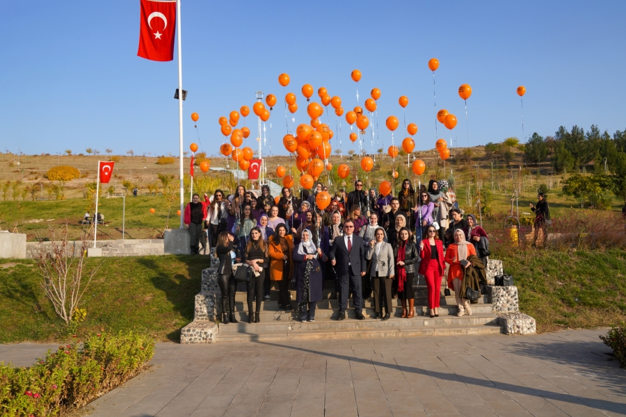 Diyarbakır Büyükşehir Belediyesi bünyesinde görev yapan personel, kadına yönelik şiddete karşı farkındalık oluşturmak amacıyla turuncu balon uçurdu.