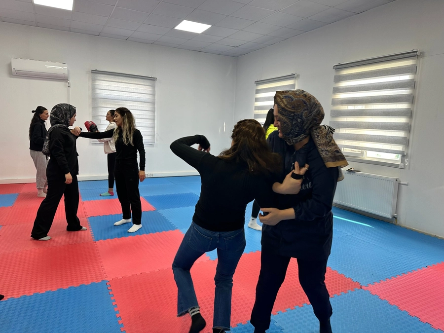 Kadınların güvenliklerini artırmak amacıyla düzenlenen atölyede, temel yakın savunma teknikleri üzerinde duruldu. Katılımcılar, olası tehlike anlarında nasıl tepki verebileceklerini öğrenmek için çeşitli pratikler yaptı. Atölye boyunca, savunma pozisyonları, saldırganın saldırısını savuşturma, dikkatli bir şekilde kaçma ve acil durumlarda çevreyi kullanma gibi teknikler uygulamalı olarak öğretildi.
